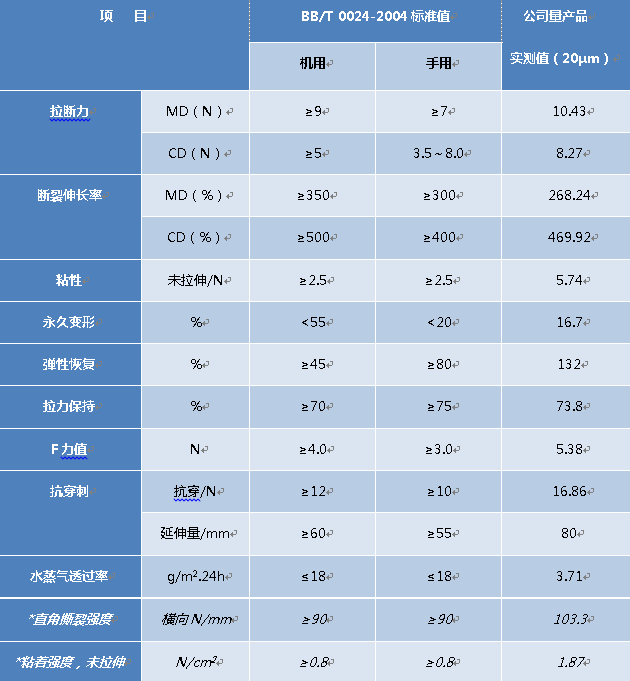 產品具有較高的拉伸強度和自粘性。